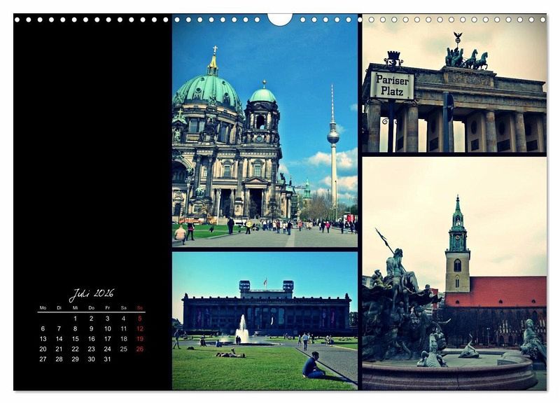 Machen Sie in 12 Monaten eine Reise durch die Straßen von Berlin. Entdecken Sie die East Side Gallery mit Trabbi-Tour, den Alexanderplatz, den Mauerpark mit buntem Trödelleben, den Dom am Lustgarten und versteckte Details der Stadt in voller Farbenpracht.