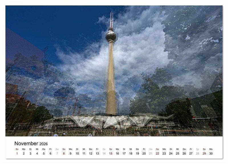 Jeder Monat dieses Kalenders ist ein Kunstwerk, ein Spiel mit Wahrnehmung, Raum und Zeit in der Hauptstadt.