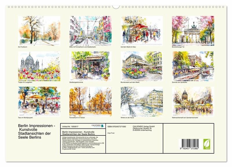 PREMIUM-LINIE - Brillanter Fotokalender mit 12 wunderschönen Motiven, Kunstdruck in Hochglanz in Museumsqualität.QUALITÄT - edle Materialien, stabile Rückwand mit 2 innovativen Einstecktaschen für eine optimale Präsentation an der Wand.NACHHALTIG - deutliche Abfallreduzierung durch bedarfsgerechte Einzelstückfertigung, umweltfreundliches FSC-zertifiziertes Papier, Produktion in Deutschland, klimabewusste Logistik.PERFEKTES GESCHENK - Kalender für Freunde und Familie, für Kinder und Erwachsene, jung und alt, zu Weihnachten, Geburtstag oder zwischendurch.KI-Aquarell-Szenen der deutschen Hauptstadt von Autor(in): Anja Frost