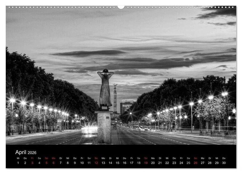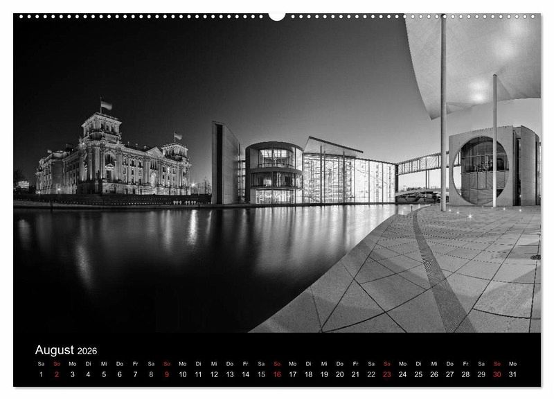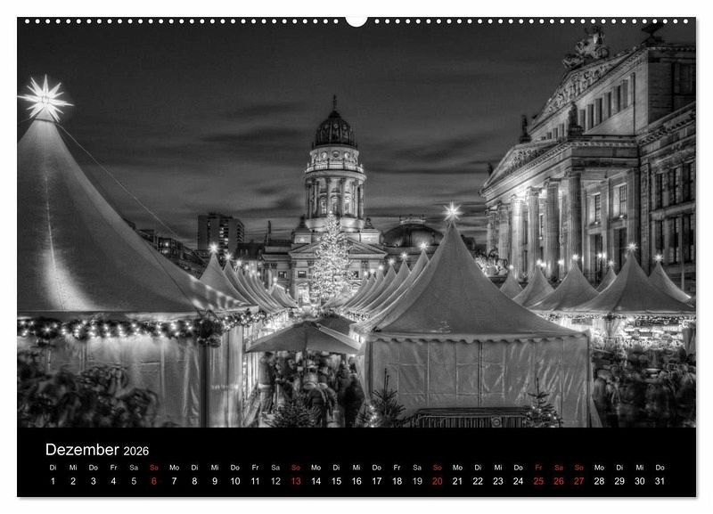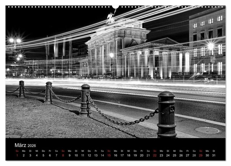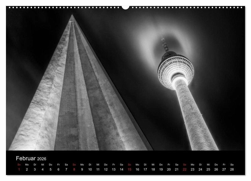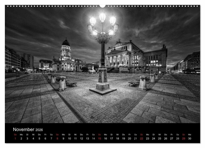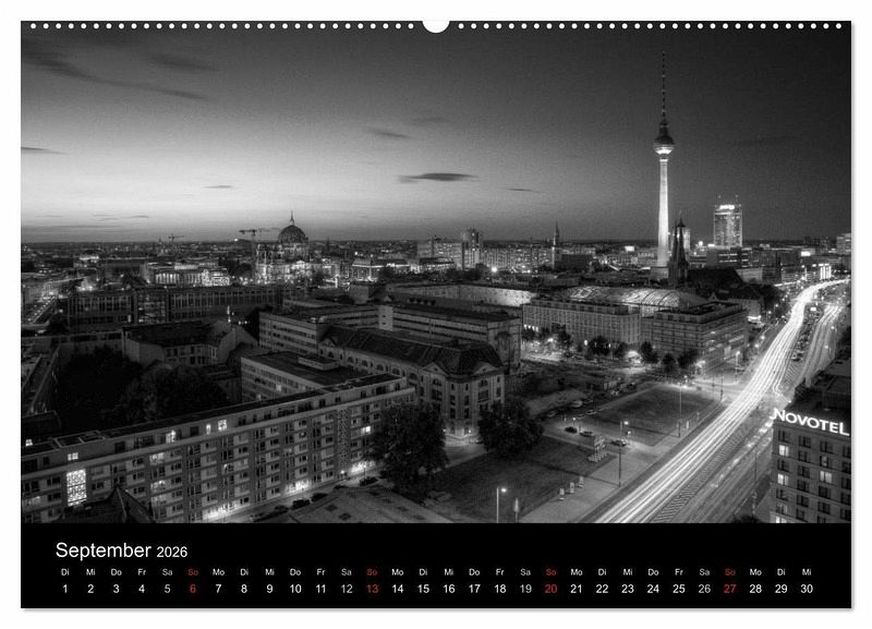 In diesem Kalender reduziert Marcus Klepper seine Heimatstadt Berlin auf die Farben Schwarz und Weiß, um den Blick des Betrachters nicht mit unnötigen Farben abzulenken.