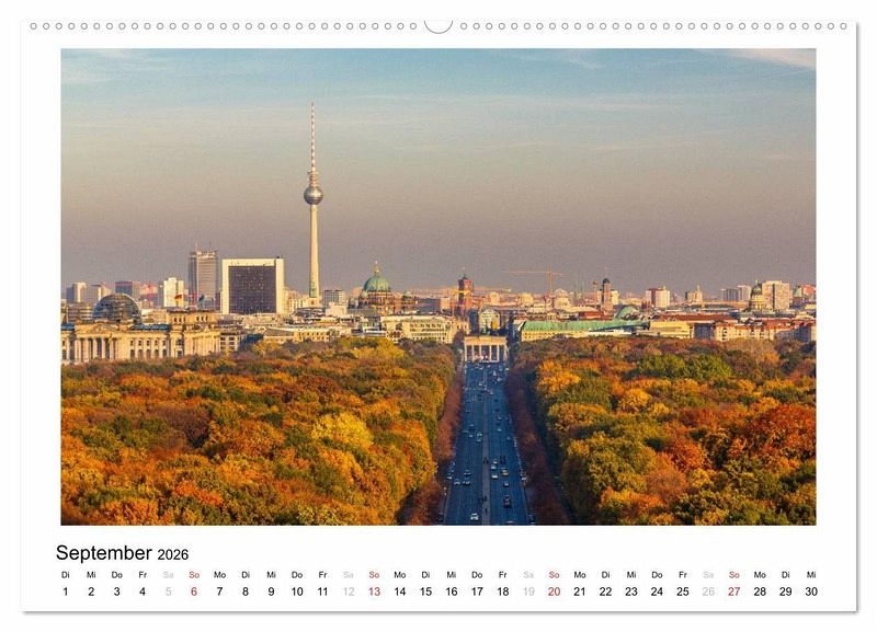 September: Tiergarten mit Brandenbuger Tor und Fernsehturm