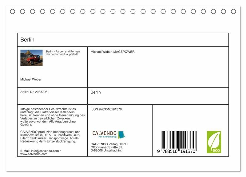 QUALITÄT - Hochwertiger Fotokalender mit 12 wunderschönen Motiven auf lichtbeständigem Bilderdruckpapier, robuste Spiralbindung.NACHHALTIG - deutliche Abfallreduzierung durch bedarfsgerechte Einzelstückfertigung, umweltfreundliches FSC-zertifiziertes Papier, Produktion in Deutschland, klimabewusste Logistik.PERFEKTES GESCHENK - Kalender für Freunde und Familie, für Kinder und Erwachsene, jung und alt, zu Weihnachten, Geburtstag oder zwischendurch.VIELFALT - Bildkalender in verschiedenen Formaten, z.B. DIN A5, DIN A4, DIN A3 sowie DIN A2. Ob Naturmotiv, Gemälde oder Fotos, ideal für ein persönliches Wohlfühlambiente.Berlin ist eine Reise wert - Farben und Formen der deutschen Hauptstadt von Autor(in): Michael Weber