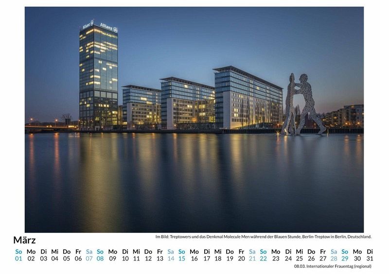 Entdecken Sie Berlin-Treptow in seiner ganzen Vielfalt mit unserem hochwertigen Wandkalender! 12 liebevoll ausgewählte Motive entführen Sie in die schönsten Ecken dieses charmanten Berliner Stadtteils - von idyllischen Parklandschaften bis hin zu beeindruckenden historischen Bauwerken. Gedruckt auf FSC-zertifiziertem, lichtbeständigem Bilderdruckpapier, garantiert dieser Kalender nicht nur brillante Farben, sondern auch eine nachhaltige Produktion in Deutschland. Perfekt für Ihr Zuhause oder als Geschenk für Berlin-Liebhaber! Holen Sie sich ein Stück Treptow an Ihre Wand und lassen Sie sich Monat für Monat von neuen, faszinierenden Ansichten inspirieren. Jetzt bestellen! Hochwertig Erleben Sie ein Jahr voller Eleganz mit unserem Premium-Fotokalender. Jedes der 12 Motive ist auf hochwertigem, lichtbeständigem Bilderdruckpapier gedruckt, um die Lebendigkeit jedes Bildes zu bewahren. Die robuste Spiralbindung gewährleistet Langlebigkeit und einfache Handhabung. Nachhaltig Unser Engagement für die Umwelt spiegelt sich in jedem Exemplar wider. Durch die Produktion auf Abruf reduzieren wir signifikant unseren Abfall. Wir verwenden ausschließlich umweltfreundliches, FSC-zertifiziertes Papier. Stolz gefertigt in Deutschland, achten wir bei unserer Logistik auf Klimaschutz, um unseren ökologischen Fußabdruck zu minimieren. Das ideale Geschenk Dieser Kalender ist das perfekte Präsent für jeden Anlass - ob Weihnachten, Geburtstage oder einfach als liebevolle Aufmerksamkeit zwischendurch. Geeignet für Freunde, Familie, Kinder und Erwachsene gleichermaßen, bereichert er jedes Zuhause mit seiner Vielfalt und Schönheit, unabhängig vom Alter der Beschenkten.