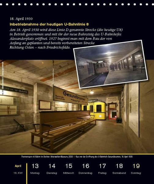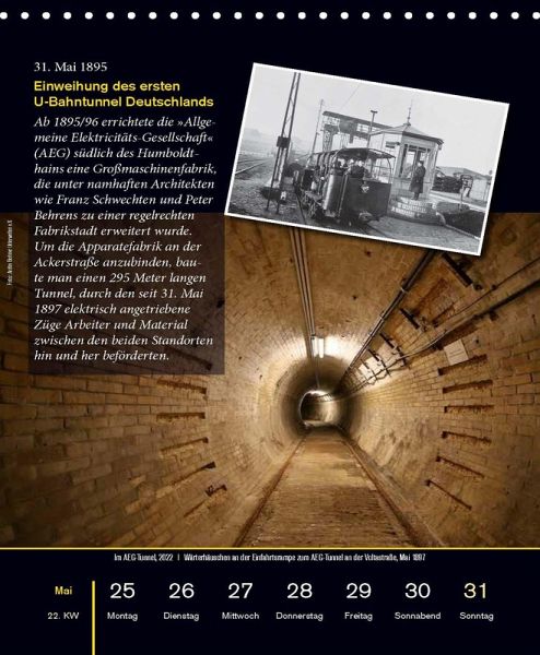 Unter dem Boden der Hauptstadt verbergen sich zahlreiche Tunnel, Kanäle und Bunker aus verschiedenen Phasen der Berliner Stadtgeschichte. Der Verein Berliner Unterwelten macht diese denkmalgeschützten Orte im Rahmen von Touren der Öffentlichkeit zugänglich. In diesem Kalender werden sie erstmals auf beeindruckenden Fotos einem breiten Publikum vorgestellt. Mit Texten von Dietmar Arnold, Ingmar Arnold, Franziska Schultze und Eva Westphal.Perfekt für alle, die sich für das verborgene Berlin abseits der ausgetretenen Wege interessieren.Mit Texten von Dietmar Arnold, Ingmar Arnold, Gianni Düring, Jonathan Grändorf, Franziska Schultze, Heike Welzel-Philipp und Eva Westphal.