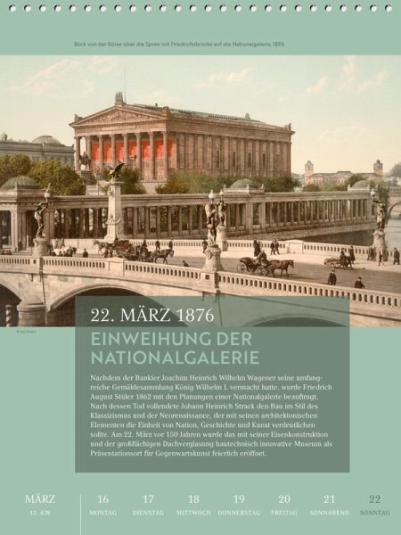 Der beliebte Wandkalender präsentiert Woche für Woche ein Ereignis der Berliner Geschichte in Wort und Bild. Marc Lippuner hat 53 spannende, bewegende und interessante Schlaglichter ausgesucht und die Hintergründe recherchiert. Ein Muss für alle, die sich für die Kultur Berlins interessieren!