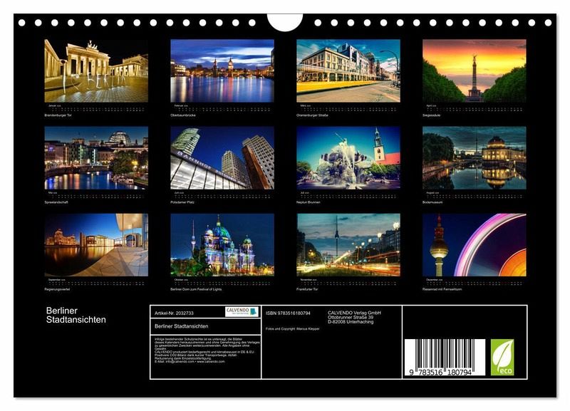 In diesem Kalender wird Berlin in einer nie dagewesenen Art und Weise präsentiert. Für die Fotografien wendete Marcus Klepper eine spezielle Digitale Form der Fotografie an. Umgangssprachlich auch als HDR Technik bekannt.