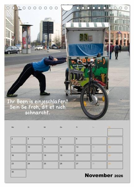 Terminkalender mit Berliner Charme, Witz und Herzlichkeit. Mit Bildern, die origineller nicht sein können und passenden Sprüchen, die Sie zum Schmunzeln bringen.