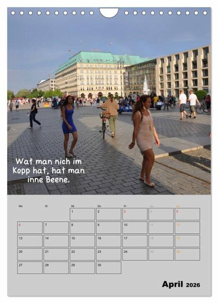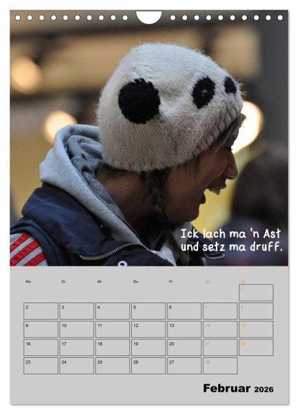 Terminkalender mit Berliner Charme, Witz und Herzlichkeit. Mit Bildern, die origineller nicht sein können und passenden Sprüchen, die Sie zum Schmunzeln bringen. Ein Kalender, der das ganze Jahr gute Laune verbreitet.