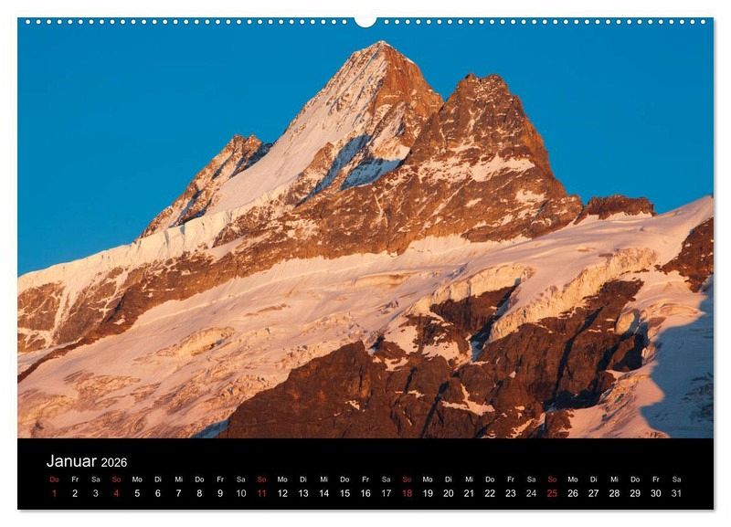 Januar: Schreckhörner in der Abendsonne, Grindelwald