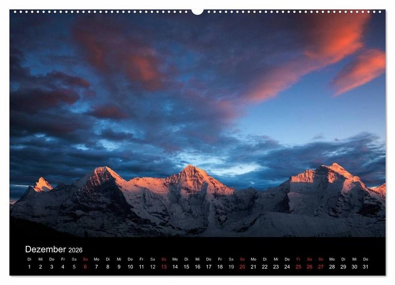 Dezember: Eiger, Mönch, Jungfrau im Abendrot