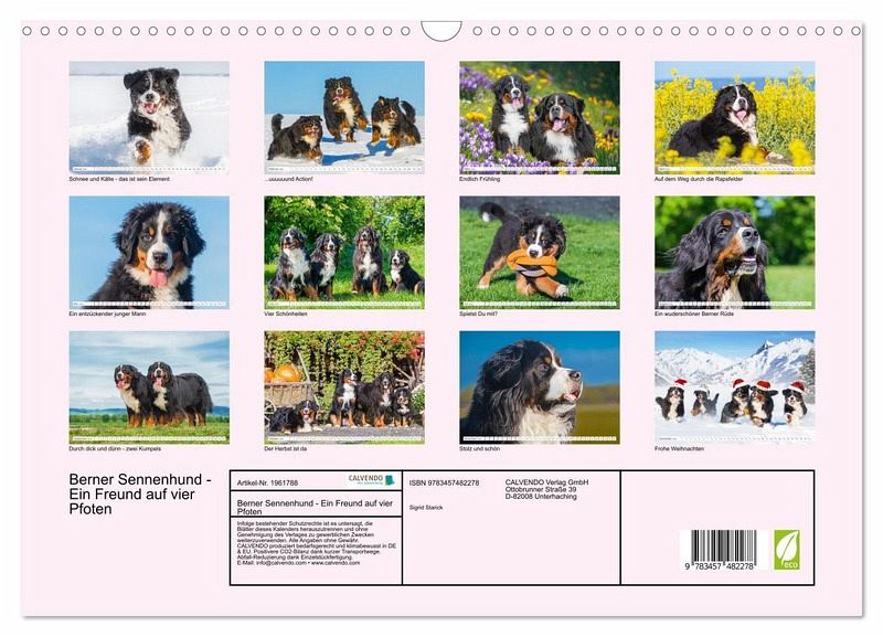 QUALITÄT - Hochwertiger Fotokalender mit 12 wunderschönen Motiven auf lichtbeständigem Bilderdruckpapier, robuste Spiralbindung mit Aufhängebügel.NACHHALTIG - deutliche Abfallreduzierung durch bedarfsgerechte Einzelstückfertigung, umweltfreundliches FSC-zertifiziertes Papier, Produktion in Deutschland, klimabewusste Logistik.PERFEKTES GESCHENK - Kalender für Freunde und Familie, für Kinder und Erwachsene, jung und alt, zu Weihnachten, Geburtstag oder zwischendurch.VIELFALT - Bildkalender in verschiedenen Formaten, z.B. DIN A5, DIN A4, DIN A3 sowie DIN A2. Ob Naturmotiv, Gemälde oder Fotos, ideal für ein persönliches Wohlfühlambiente.Er ist traumhaft schön, wenn nicht sogar die schönste Hunderasse überhaupt - der Berner Sennenhund. 13 wundervolle Bilder dieser Traumhunde. von Autor(in): SiSta-Tierfoto