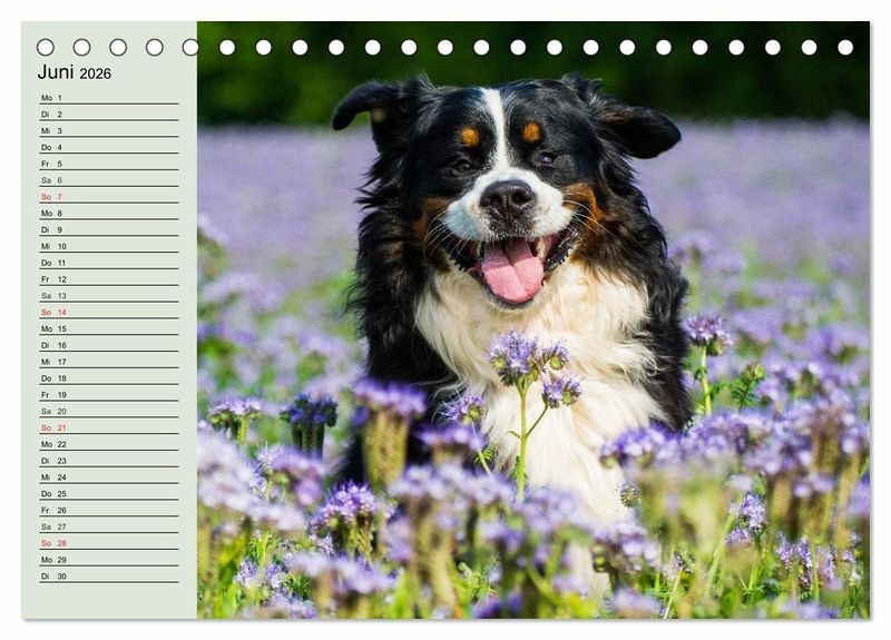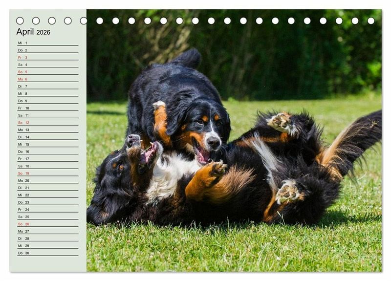 Berner Sennenhunde, eine der wohl schönsten Hunderassen, verzaubern die Menschen durch ihr bärenhaftes Aussehen, ihre wunderschönen Farben und ihre sprichwörtliche Gutmütigkeit. Die Tierfotografin Sigrid Starick hat für Sie Momente voller Lebensfreude in 13 wunderschönen Fotos festgehalten. Ein Muss für jeden Freund dieser bezaubernden Hunderasse.