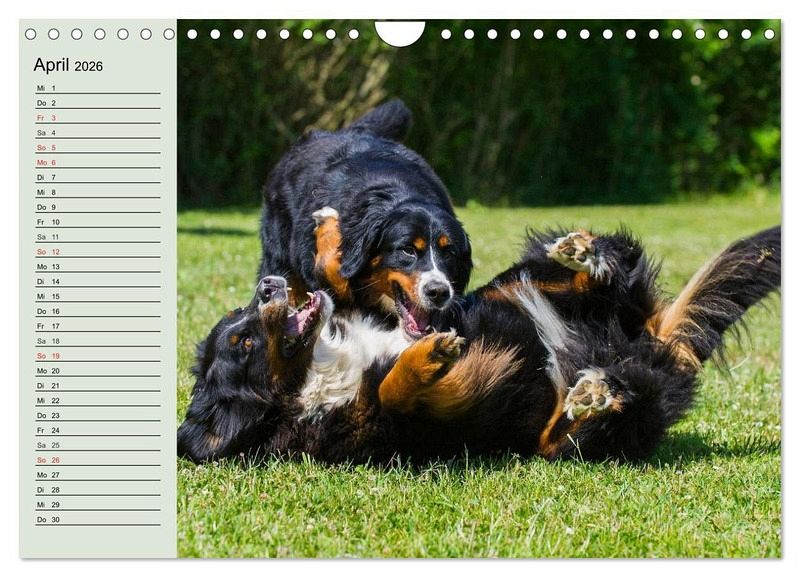 Berner Sennenhunde, eine der wohl schönsten Hunderassen, verzaubern die Menschen durch ihr bärenhaftes Aussehen, ihre wunderschönen Farben und ihre sprichwörtliche Gutmütigkeit. Die Tierfotografin Sigrid Starick hat für Sie Momente voller Lebensfreude in 13 wunderschönen Fotos festgehalten. Ein Muss für jeden Freund dieser bezaubernden Hunderasse.