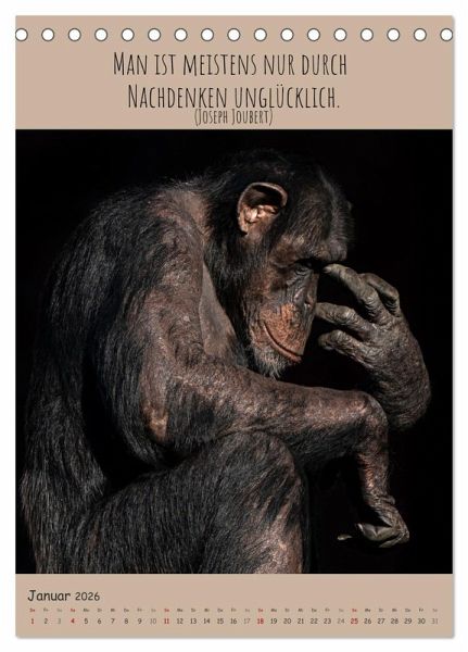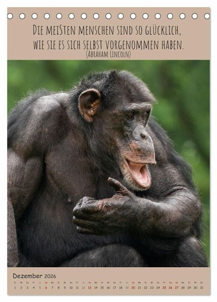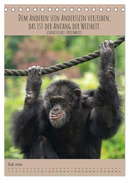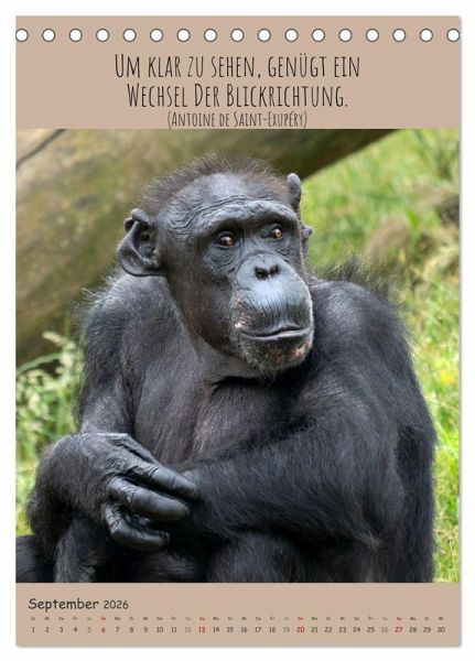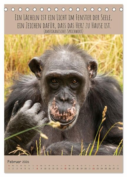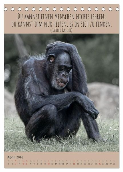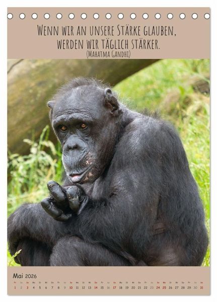 In diesem Kalender vereint die Autorin Anke Grau besinnliche Zitate mit ausdrucksstarken Porträts von Schimpansen. Jeden Monat ein Hingucker mit Nachklang!