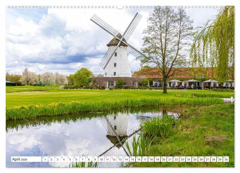 April: Elfrather Turmwindmühle auf dem Golfplatz in Krefeld