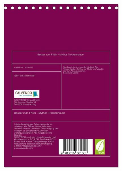 QUALITÄT - Hochwertiger Fotokalender mit 12 wunderschönen Motiven auf lichtbeständigem Bilderdruckpapier, robuste Spiralbindung.NACHHALTIG - deutliche Abfallreduzierung durch bedarfsgerechte Einzelstückfertigung, umweltfreundliches FSC-zertifiziertes Papier, Produktion in Deutschland, klimabewusste Logistik.PERFEKTES GESCHENK - Kalender für Freunde und Familie, für Kinder und Erwachsene, jung und alt, zu Weihnachten, Geburtstag oder zwischendurch.VIELFALT - Bildkalender in verschiedenen Formaten, z.B. DIN A5, DIN A4, DIN A3 sowie DIN A2. Ob Naturmotiv, Gemälde oder Fotos, ideal für ein persönliches Wohlfühlambiente.Mit der Fönhaube in die Vergangenheit. Fotos im Vintage-Style, ganz ohne Frisör von Autor(in): Lichtgestalt