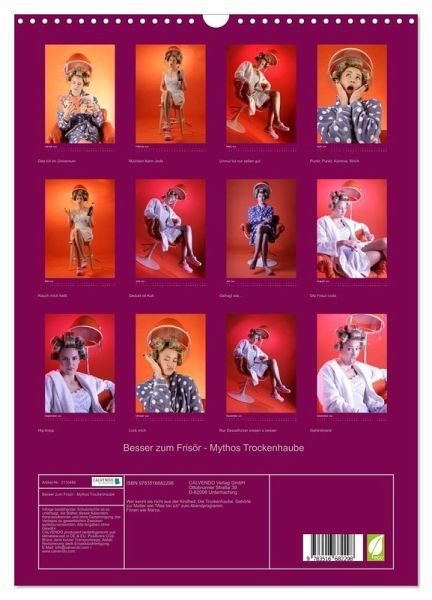 Erinnern Sie sich noch an die Zeit der Trockenhauben? Die Frisuren waren ästhetischer Horror und man hätte sich gewünscht, mehr Frauen würden den Frisör wechseln. Eine humorvolle Fotoserie zum Thema Fönhaube im Vintage-Style voller Lockenwickler. Schenken Sie diesen Kalender dem Frisör ihres Vertrauens!