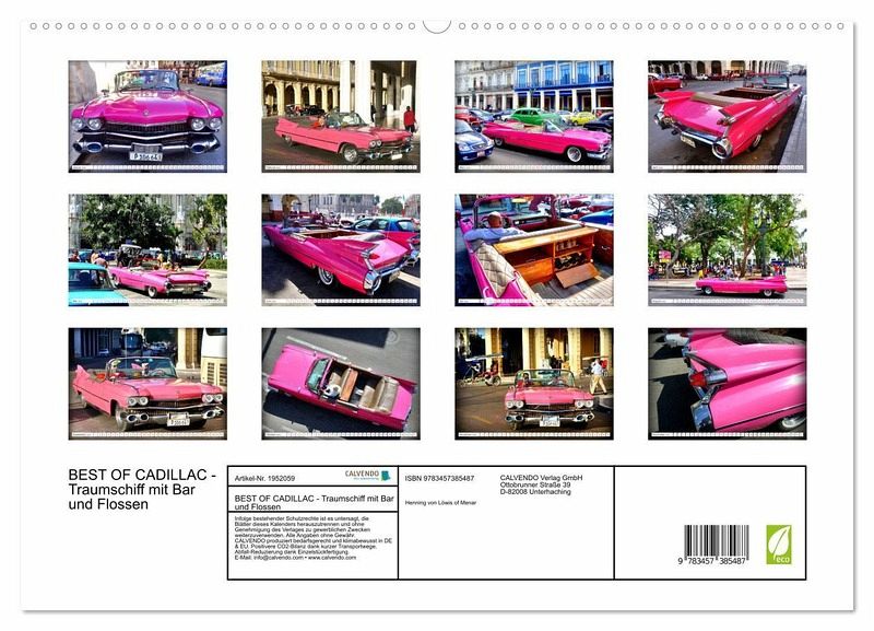 PREMIUM-LINIE - Brillanter Fotokalender mit 12 wunderschönen Motiven, Kunstdruck in Hochglanz in Museumsqualität.QUALITÄT - edle Materialien, stabile Rückwand mit 2 innovativen Einstecktaschen für eine optimale Präsentation an der Wand.NACHHALTIG - deutliche Abfallreduzierung durch bedarfsgerechte Einzelstückfertigung, umweltfreundliches FSC-zertifiziertes Papier, Produktion in Deutschland, klimabewusste Logistik.PERFEKTES GESCHENK - Kalender für Freunde und Familie, für Kinder und Erwachsene, jung und alt, zu Weihnachten, Geburtstag oder zwischendurch.Ein Cadillac Cabrio aus dem Jahre 1959 in Havanna von Autor(in): Henning von Loewis of Menar