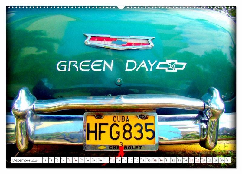 Im Oldtimerparadies Kuba sind Tausende klassischer Automobile in allen Formen und Farben unterwegs. Gemessen an der Zahl der Oldtimer war die Farbe Grün in den Vierziger und Fünfziger Jahren offenbar außerordentlich beliebt. Besonders sehenswert sind die grünen Chevys.