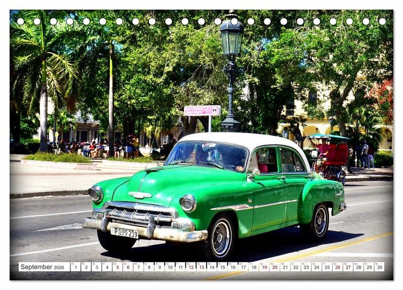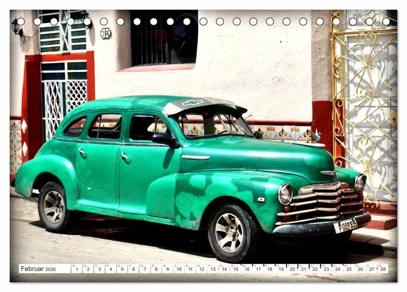 Im Oldtimerparadies Kuba sind Tausende klassischer Automobile in allen Formen und Farben unterwegs. Gemessen an der Zahl der Oldtimer war die Farbe Grün in den Vierziger und Fünfziger Jahren offenbar außerordentlich beliebt. Besonders sehenswert sind die grünen Chevys.