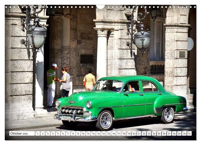 Im Oldtimerparadies Kuba sind Tausende klassischer Automobile in allen Formen und Farben unterwegs. Gemessen an der Zahl der Oldtimer war die Farbe Grün in den Vierziger und Fünfziger Jahren offenbar außerordentlich beliebt. Besonders sehenswert sind die grünen Chevys.