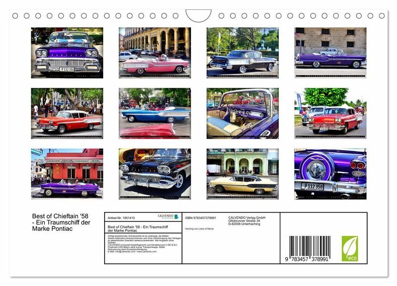 QUALITÄT - Hochwertiger Fotokalender mit 12 wunderschönen Motiven auf lichtbeständigem Bilderdruckpapier, robuste Spiralbindung mit Aufhängebügel.NACHHALTIG - deutliche Abfallreduzierung durch bedarfsgerechte Einzelstückfertigung, umweltfreundliches FSC-zertifiziertes Papier, Produktion in Deutschland, klimabewusste Logistik.PERFEKTES GESCHENK - Kalender für Freunde und Familie, für Kinder und Erwachsene, jung und alt, zu Weihnachten, Geburtstag oder zwischendurch.VIELFALT - Bildkalender in verschiedenen Formaten, z.B. DIN A5, DIN A4, DIN A3 sowie DIN A2. Ob Naturmotiv, Gemälde oder Fotos, ideal für ein persönliches Wohlfühlambiente.Der US-Oldtimer Pontiac Chieftain von 1958 in Kuba von Autor(in): Henning von Loewis of Menar
