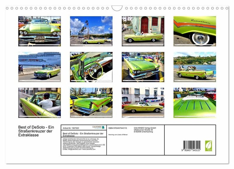 QUALITÄT - Hochwertiger Fotokalender mit 12 wunderschönen Motiven auf lichtbeständigem Bilderdruckpapier, robuste Spiralbindung mit Aufhängebügel.NACHHALTIG - deutliche Abfallreduzierung durch bedarfsgerechte Einzelstückfertigung, umweltfreundliches FSC-zertifiziertes Papier, Produktion in Deutschland, klimabewusste Logistik.PERFEKTES GESCHENK - Kalender für Freunde und Familie, für Kinder und Erwachsene, jung und alt, zu Weihnachten, Geburtstag oder zwischendurch.VIELFALT - Bildkalender in verschiedenen Formaten, z.B. DIN A5, DIN A4, DIN A3 sowie DIN A2. Ob Naturmotiv, Gemälde oder Fotos, ideal für ein persönliches Wohlfühlambiente.Ein DeSoto Cabrio von 1959 in Havanna von Autor(in): Henning von Loewis of Menar