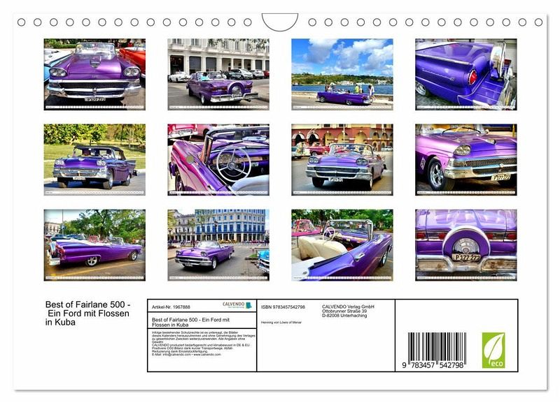 QUALITÄT - Hochwertiger Fotokalender mit 12 wunderschönen Motiven auf lichtbeständigem Bilderdruckpapier, robuste Spiralbindung mit Aufhängebügel.NACHHALTIG - deutliche Abfallreduzierung durch bedarfsgerechte Einzelstückfertigung, umweltfreundliches FSC-zertifiziertes Papier, Produktion in Deutschland, klimabewusste Logistik.PERFEKTES GESCHENK - Kalender für Freunde und Familie, für Kinder und Erwachsene, jung und alt, zu Weihnachten, Geburtstag oder zwischendurch.VIELFALT - Bildkalender in verschiedenen Formaten, z.B. DIN A5, DIN A4, DIN A3 sowie DIN A2. Ob Naturmotiv, Gemälde oder Fotos, ideal für ein persönliches Wohlfühlambiente.Der US-Oldtimer Ford Fairlane 500 von 1958 in Kuba von Autor(in): Henning von Loewis of Menar