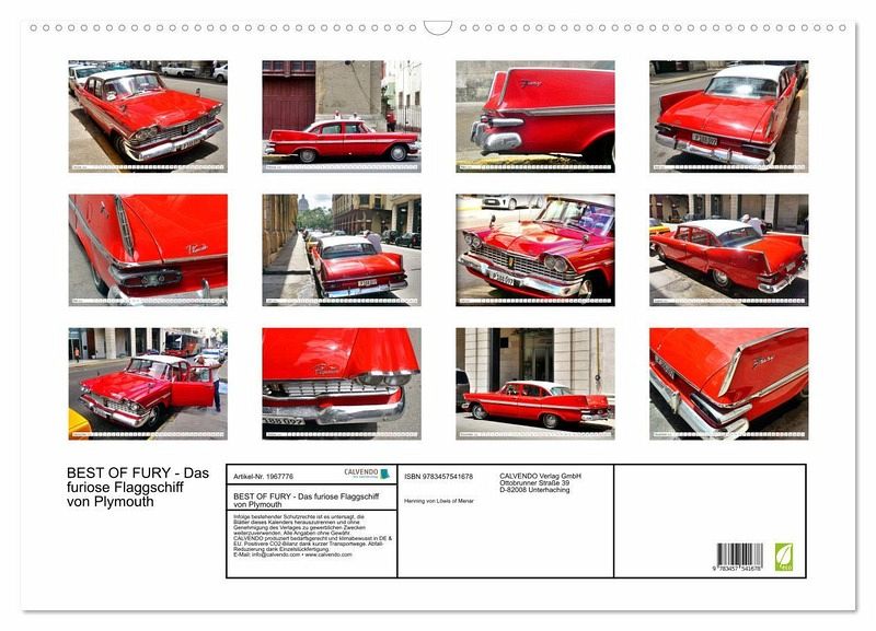 QUALITÄT - Hochwertiger Fotokalender mit 12 wunderschönen Motiven auf lichtbeständigem Bilderdruckpapier, robuste Spiralbindung mit Aufhängebügel.NACHHALTIG - deutliche Abfallreduzierung durch bedarfsgerechte Einzelstückfertigung, umweltfreundliches FSC-zertifiziertes Papier, Produktion in Deutschland, klimabewusste Logistik.PERFEKTES GESCHENK - Kalender für Freunde und Familie, für Kinder und Erwachsene, jung und alt, zu Weihnachten, Geburtstag oder zwischendurch.VIELFALT - Bildkalender in verschiedenen Formaten, z.B. DIN A5, DIN A4, DIN A3 sowie DIN A2. Ob Naturmotiv, Gemälde oder Fotos, ideal für ein persönliches Wohlfühlambiente.Der US-Oldtimer Plymouth Fury von 1959 in Havanna von Autor(in): Henning von Loewis of Menar
