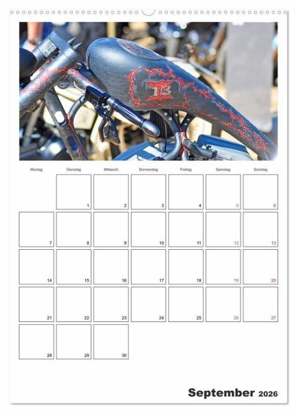 Best of Harley-Davidson Custom-Style Tanks Monatskalender mit wunderschönen Harley-Davidson Custom-Bike Motiven. Die Fotos wurden auf weltweit bekannten Harley-Events in Daytona - USA / Hamburg / Faaker See - Österreich und dem 110th Harley-Davidson Anniversary in Rom gemacht. Bringen sie einen Hauch vom Harley-Davidson Lifestyle in ihr tägliches Leben.