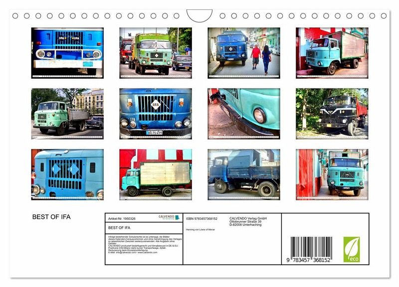 QUALITÄT - Hochwertiger Fotokalender mit 12 wunderschönen Motiven auf lichtbeständigem Bilderdruckpapier, robuste Spiralbindung mit Aufhängebügel.NACHHALTIG - deutliche Abfallreduzierung durch bedarfsgerechte Einzelstückfertigung, umweltfreundliches FSC-zertifiziertes Papier, Produktion in Deutschland, klimabewusste Logistik.PERFEKTES GESCHENK - Kalender für Freunde und Familie, für Kinder und Erwachsene, jung und alt, zu Weihnachten, Geburtstag oder zwischendurch.VIELFALT - Bildkalender in verschiedenen Formaten, z.B. DIN A5, DIN A4, DIN A3 sowie DIN A2. Ob Naturmotiv, Gemälde oder Fotos, ideal für ein persönliches Wohlfühlambiente.LKW W50 und L60 von IFA in Kuba von Autor(in): Henning von Loewis of Menar