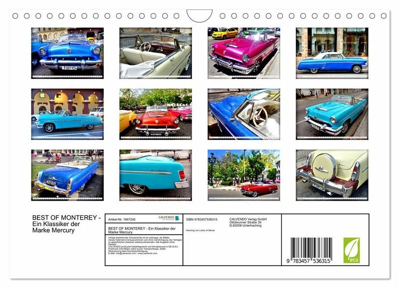 QUALITÄT - Hochwertiger Fotokalender mit 12 wunderschönen Motiven auf lichtbeständigem Bilderdruckpapier, robuste Spiralbindung mit Aufhängebügel.NACHHALTIG - deutliche Abfallreduzierung durch bedarfsgerechte Einzelstückfertigung, umweltfreundliches FSC-zertifiziertes Papier, Produktion in Deutschland, klimabewusste Logistik.PERFEKTES GESCHENK - Kalender für Freunde und Familie, für Kinder und Erwachsene, jung und alt, zu Weihnachten, Geburtstag oder zwischendurch.VIELFALT - Bildkalender in verschiedenen Formaten, z.B. DIN A5, DIN A4, DIN A3 sowie DIN A2. Ob Naturmotiv, Gemälde oder Fotos, ideal für ein persönliches Wohlfühlambiente.Der US-Oldtimer Mercury Monterey in Havanna von Autor(in): Henning von Loewis of Menar