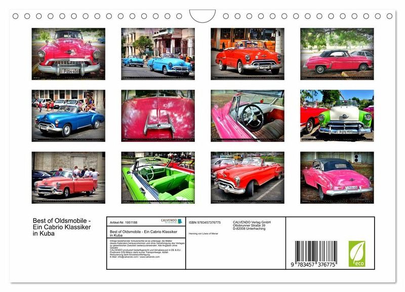 QUALITÄT - Hochwertiger Fotokalender mit 12 wunderschönen Motiven auf lichtbeständigem Bilderdruckpapier, robuste Spiralbindung mit Aufhängebügel.NACHHALTIG - deutliche Abfallreduzierung durch bedarfsgerechte Einzelstückfertigung, umweltfreundliches FSC-zertifiziertes Papier, Produktion in Deutschland, klimabewusste Logistik.PERFEKTES GESCHENK - Kalender für Freunde und Familie, für Kinder und Erwachsene, jung und alt, zu Weihnachten, Geburtstag oder zwischendurch.VIELFALT - Bildkalender in verschiedenen Formaten, z.B. DIN A5, DIN A4, DIN A3 sowie DIN A2. Ob Naturmotiv, Gemälde oder Fotos, ideal für ein persönliches Wohlfühlambiente.Das Oldsmobile Cabriolet von 1951 in Kuba von Autor(in): Henning von Loewis of Menar