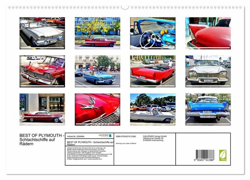 PREMIUM-LINIE - Brillanter Fotokalender mit 12 wunderschönen Motiven, Kunstdruck in Hochglanz in Museumsqualität.QUALITÄT - edle Materialien, stabile Rückwand mit 2 innovativen Einstecktaschen für eine optimale Präsentation an der Wand.NACHHALTIG - deutliche Abfallreduzierung durch bedarfsgerechte Einzelstückfertigung, umweltfreundliches FSC-zertifiziertes Papier, Produktion in Deutschland, klimabewusste Logistik.PERFEKTES GESCHENK - Kalender für Freunde und Familie, für Kinder und Erwachsene, jung und alt, zu Weihnachten, Geburtstag oder zwischendurch.US-Straßenkreuzer der Marke Plymouth in Kuba von Autor(in): Henning von Loewis of Menar
