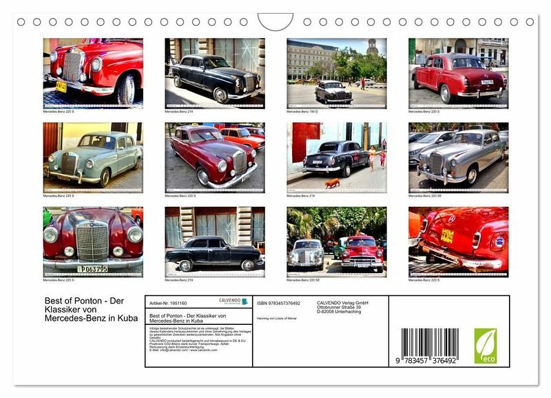 QUALITÄT - Hochwertiger Fotokalender mit 12 wunderschönen Motiven auf lichtbeständigem Bilderdruckpapier, robuste Spiralbindung mit Aufhängebügel.NACHHALTIG - deutliche Abfallreduzierung durch bedarfsgerechte Einzelstückfertigung, umweltfreundliches FSC-zertifiziertes Papier, Produktion in Deutschland, klimabewusste Logistik.PERFEKTES GESCHENK - Kalender für Freunde und Familie, für Kinder und Erwachsene, jung und alt, zu Weihnachten, Geburtstag oder zwischendurch.VIELFALT - Bildkalender in verschiedenen Formaten, z.B. DIN A5, DIN A4, DIN A3 sowie DIN A2. Ob Naturmotiv, Gemälde oder Fotos, ideal für ein persönliches Wohlfühlambiente.VerschiedeneModelle des Ponton-Mercedes in Kuba von Autor(in): Henning von Loewis of Menar