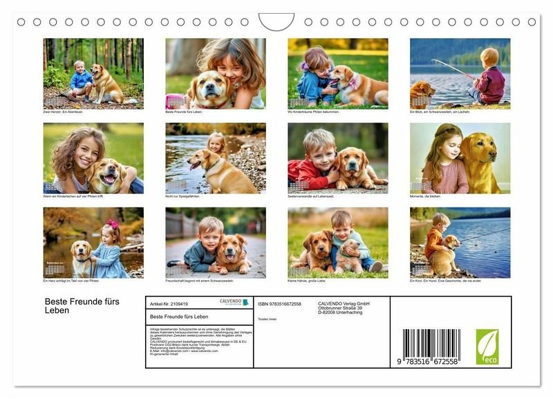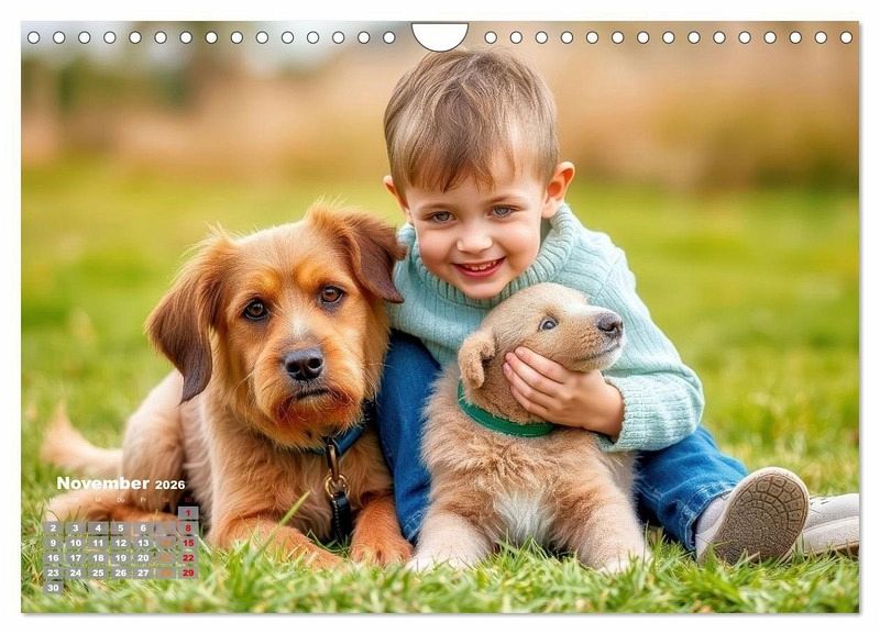 Ein Jahr voller Pfotenspuren und Kinderlachen - dieser Kalender feiert die kleinen Momente großer Freundschaft. Für alle, die wissen: Ein Blick, ein Bellen, ein Lächeln - das ist Liebe auf Lebenszeit.