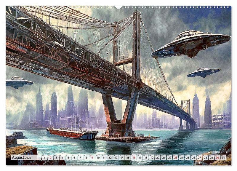 Die Frage, ob es außer uns Erdenbewohner noch andere Lebewesen, vor allem intelligente Lebewesen irgendwo im Universum gibt, beschäftigt die Menschen seit Generationen. Unser Bildkalender scheint eine Antwort darauf zu geben, aber es sind keine Tatsachen, die hier abgebildet sind, sondern Fiktionen - allerdings auf eine sehr wirkungsvolle und realitätsnahe Weise. Die Bilder zeigen fremde Raumschiffe, die sich friedlich in verschiedenen Landschaften dieser Erde bewegen. Die Annahme, dass auch eine friedliche Begegnung möglich ist, sollte uns Zuversicht geben und die nötige Gelassenheit, um die Monatsbilder gebührend bewundern zu können. Für die Schaffung dieser Bilder hat sich eine künstliche Intelligenz ins Zeug gelegt.