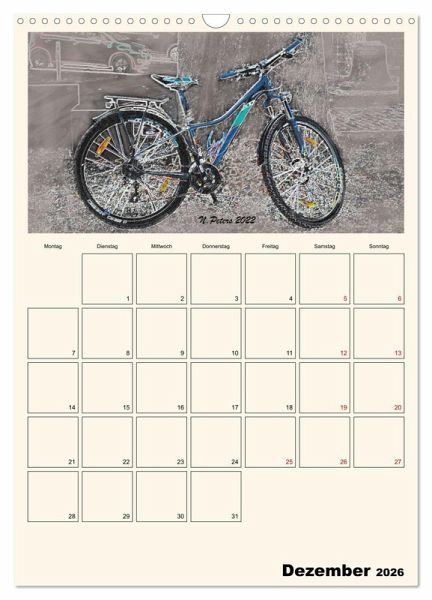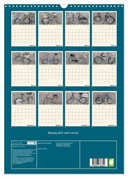 QUALITÄT - Hochwertiger Fotokalender mit 12 wunderschönen Motiven auf lichtbeständigem Bilderdruckpapier, robuste Spiralbindung mit Aufhängebügel.NACHHALTIG - deutliche Abfallreduzierung durch bedarfsgerechte Einzelstückfertigung, umweltfreundliches FSC-zertifiziertes Papier, Produktion in Deutschland, klimabewusste Logistik.PERFEKTES GESCHENK - Kalender für Freunde und Familie, für Kinder und Erwachsene, jung und alt, zu Weihnachten, Geburtstag oder zwischendurch.VIELFALT - Bildkalender in verschiedenen Formaten, z.B. DIN A5, DIN A4, DIN A3 sowie DIN A2. Ob Naturmotiv, Gemälde oder Fotos, ideal für ein persönliches Wohlfühlambiente.Fahrräder als Symbol für umweltbewusste Bewegung nach vorne von Autor(in): Natascha Peters