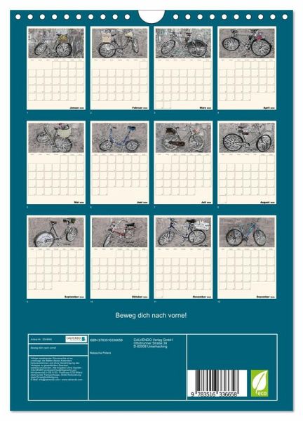 QUALITÄT - Hochwertiger Fotokalender mit 12 wunderschönen Motiven auf lichtbeständigem Bilderdruckpapier, robuste Spiralbindung mit Aufhängebügel.NACHHALTIG - deutliche Abfallreduzierung durch bedarfsgerechte Einzelstückfertigung, umweltfreundliches FSC-zertifiziertes Papier, Produktion in Deutschland, klimabewusste Logistik.PERFEKTES GESCHENK - Kalender für Freunde und Familie, für Kinder und Erwachsene, jung und alt, zu Weihnachten, Geburtstag oder zwischendurch.VIELFALT - Bildkalender in verschiedenen Formaten, z.B. DIN A5, DIN A4, DIN A3 sowie DIN A2. Ob Naturmotiv, Gemälde oder Fotos, ideal für ein persönliches Wohlfühlambiente.Fahrräder als Symbol für umweltbewusste Bewegung nach vorne von Autor(in): Natascha Peters