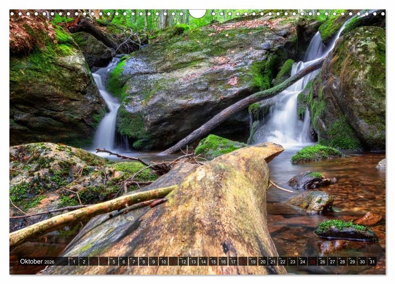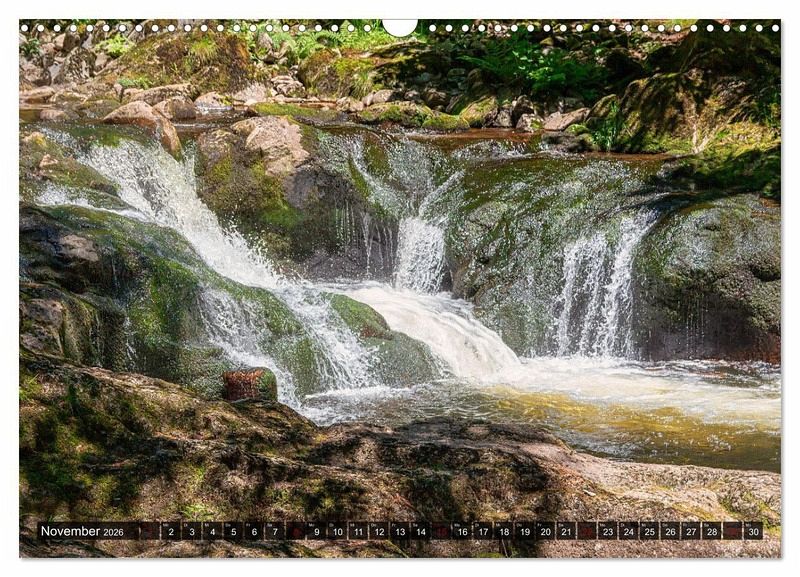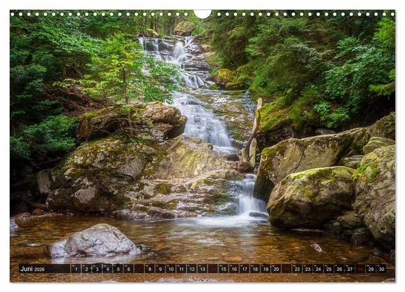 Abbildungen: Januar: Höllbach (Falkenstein) Februar: Rieslochfälle (Arber) März: Höllbach (Falkenstein) April: Höllbach (Falkenstein) Mai: Kleine Ohe (Lusen) Juni: Rieslochfälle (Arber) Juli: Buchberger Leite August: Höllbach (Falkenstein)
