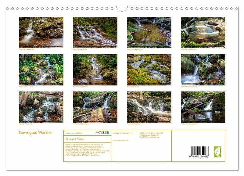 QUALITÄT - Hochwertiger Fotokalender mit 12 wunderschönen Motiven auf lichtbeständigem Bilderdruckpapier, robuste Spiralbindung mit Aufhängebügel.NACHHALTIG - deutliche Abfallreduzierung durch bedarfsgerechte Einzelstückfertigung, umweltfreundliches FSC-zertifiziertes Papier, Produktion in Deutschland, klimabewusste Logistik.PERFEKTES GESCHENK - Kalender für Freunde und Familie, für Kinder und Erwachsene, jung und alt, zu Weihnachten, Geburtstag oder zwischendurch.VIELFALT - Bildkalender in verschiedenen Formaten, z.B. DIN A5, DIN A4, DIN A3 sowie DIN A2. Ob Naturmotiv, Gemälde oder Fotos, ideal für ein persönliches Wohlfühlambiente.Wasser in Bewegung, Bilder von Bächen im Bayerischen Wald von Autor(in): Baisch Werner