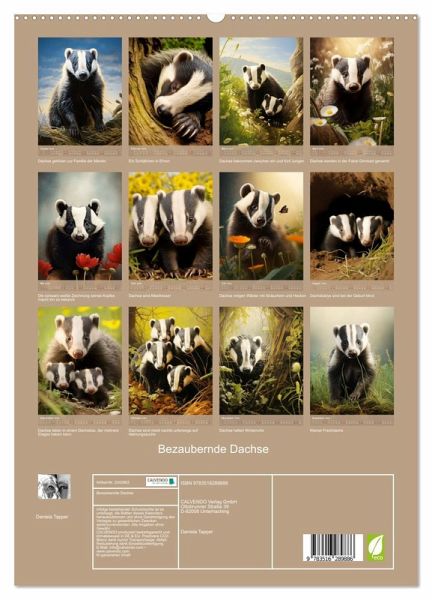 Dachse sind faszinierende Tiere, die oft im Verborgenen leben. Sie sind geschickte Jäger, die sich hauptsächlich von Würmern, Insekten und Früchten ernähren. Lassen Sie sich von diesen pelzigen Gesellen durch das Jahr begleiten und entdecken Sie, Dank einer KI, die Geheimnisse ihrer Welt. Dieser Kalender ist ein ideales Geschenk für Tierfreunde und Naturliebhaber.