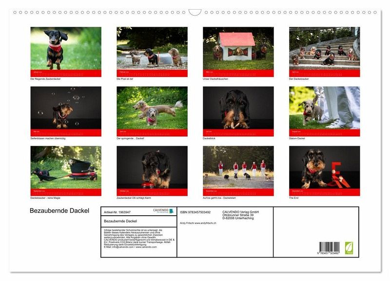 Verzaubern Sie Ihren Alltag mit dem Dackelkalender 2024! Profi-Fotograf Andy Fritschi und die Trickhunde des Dackelzaubers begleiten Sie mit 12 lebhaften Motiven durch das Jahr. Mit Charme und Schalk spielen sich die kurzbeinigen Dackel in die Herzen aller Hundeliebhaber. Ob für sich selber oder als Geschenk - der Dackelzauber begeistert und zaubert Ihnen ein Lächeln ins Gesicht!