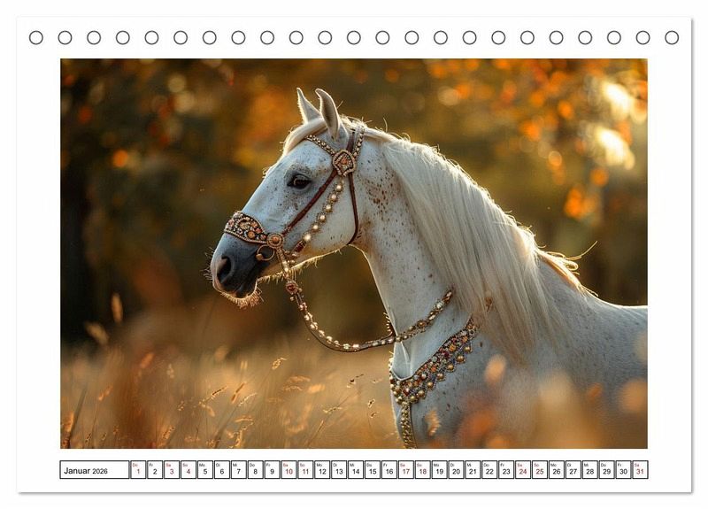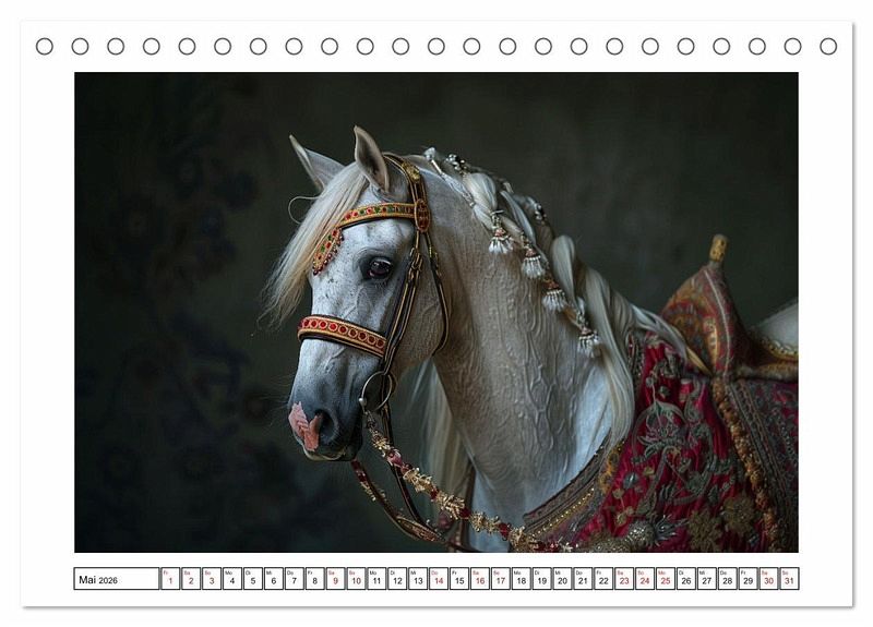 Erleben Sie die zeitlose Eleganz und königliche Anmut mit unserem faszinierenden Kalender, der die Schönheit weißer Pferde in den Mittelpunkt stellt! Dank unserer innovativen KI-Technologie werden Sie in eine Welt entführt, in der die edlen Tiere majestätisch und erhaben erscheinen. Jedes Bild ist eine Hommage an die königliche Linie, die diese wundervollen Kreaturen verkörpern. Tauchen Sie ein in die strahlende Pracht und lassen Sie sich von der Anmut und dem Glanz der weißen Pferde verzaubern.