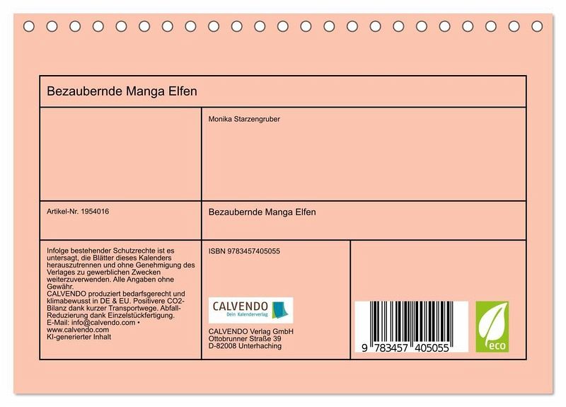 Ein Muss für jeden Manga-Liebhaber! Der Manga-Elfen-Kalender ist einfach fantastisch, liebevoll gestaltet und grandios in seiner Ausführung. Tauchen Sie ein in eine Welt voller Wunder und Fantasie, jedes Monatsblatt enthüllt eine neue zauberhafte Szene, in der zierliche Elfen mit ihren großen Augen und anmutigen Gesten die Jahreszeiten zelebrieren. Diese liebevoll illustrierten Charaktere begleiten Sie durch das Jahr, verleihen Ihrem Alltag einen Hauch Magie und regen Ihre Fantasie auf wundervolle Weise an. Ein grandios kreativer Begleiter, der nicht nur das Herz erfreut, sondern auch ein perfektes Geschenk für Ihre Liebsten ist. Erwerben Sie diesen einzigartigen Kalender und zaubern Sie sicherlich ein Lächeln auf die Lippen von jedem, der ihn sieht. Mit KI erstellt.