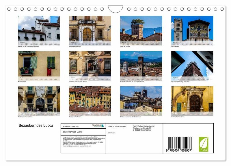 QUALITÄT - Hochwertiger Fotokalender mit 12 wunderschönen Motiven auf lichtbeständigem Bilderdruckpapier, robuste Spiralbindung mit Aufhängebügel.NACHHALTIG - deutliche Abfallreduzierung durch bedarfsgerechte Einzelstückfertigung, umweltfreundliches FSC-zertifiziertes Papier, Produktion in Deutschland, klimabewusste Logistik.PERFEKTES GESCHENK - Kalender für Freunde und Familie, für Kinder und Erwachsene, jung und alt, zu Weihnachten, Geburtstag oderzwischendurch.VIELFALT - Bildkalender in verschiedenen Formaten, z.B. DIN A5, DIN A4, DIN A3 sowie DIN A2. Ob Naturmotiv, Gemälde oder Fotos, ideal für ein persönliches Wohlfühlambiente.Lucca, die faszinierende Schönheit in der Toskana von Autor(in): Gabi Hampe