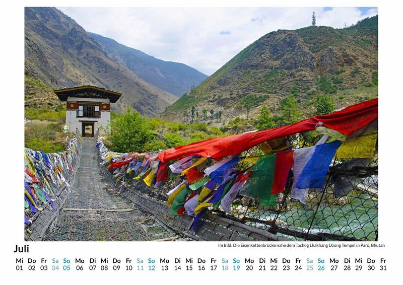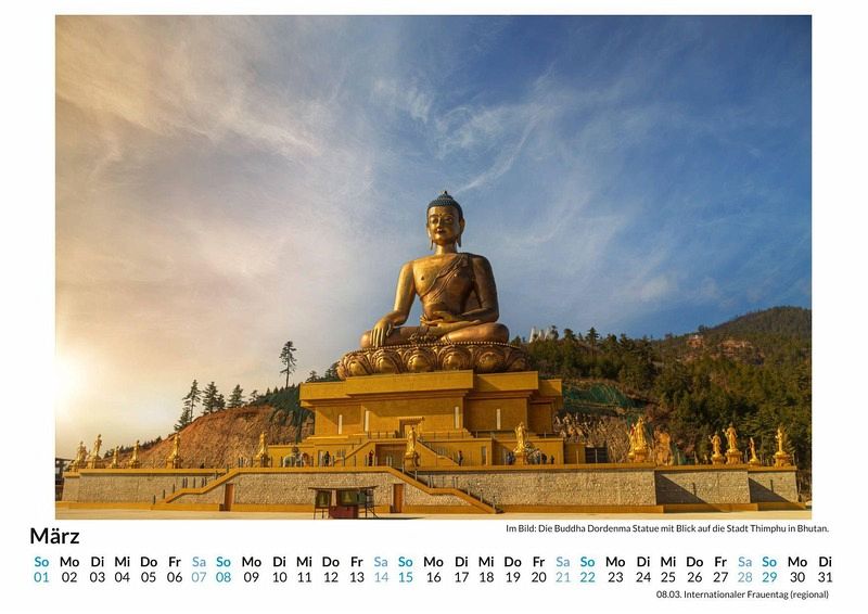 Entdecken Sie das magische Königreich Bhutan - das Top-Reiseziel 2025 - in Ihrem Zuhause! Unser hochwertiger Wandkalender entführt Sie Monat für Monat in die atemberaubende Natur und Kultur dieses einzigartigen Landes. Genießen Sie 12 sorgfältig ausgewählte Motive, die auf lichtbeständigem Bilderdruckpapier in brillanten Farben erstrahlen. Gedruckt in Deutschland auf FSC-zertifiziertem Papier, vereint dieser Kalender Nachhaltigkeit und Exklusivität. Lassen Sie sich von Bhutans majestätischen Landschaften und spirituellen Tempeln inspirieren und holen Sie sich ein Stück Fernweh an Ihre Wand. Perfekt als Geschenk oder für Ihr eigenes Zuhause - jetzt bestellen! Hochwertig Erleben Sie ein Jahr voller Eleganz mit unserem Premium-Fotokalender. Jedes der 12 Motive ist auf hochwertigem, lichtbeständigem Bilderdruckpapier gedruckt, um die Lebendigkeit jedes Bildes zu bewahren. Die robuste Spiralbindung gewährleistet Langlebigkeit und einfache Handhabung. Nachhaltig Unser Engagement für die Umwelt spiegelt sich in jedem Exemplar wider. Durch die Produktion auf Abruf reduzieren wir signifikant unseren Abfall. Wir verwenden ausschließlich umweltfreundliches, FSC-zertifiziertes Papier. Stolz gefertigt in Deutschland, achten wir bei unserer Logistik auf Klimaschutz, um unseren ökologischen Fußabdruck zu minimieren. Das ideale Geschenk Dieser Kalender ist das perfekte Präsent für jeden Anlass - ob Weihnachten, Geburtstage oder einfach als liebevolle Aufmerksamkeit zwischendurch. Geeignet für Freunde, Familie, Kinder und Erwachsene gleichermaßen, bereichert er jedes Zuhause mit seiner Vielfalt und Schönheit, unabhängig vom Alter der Beschenkten.