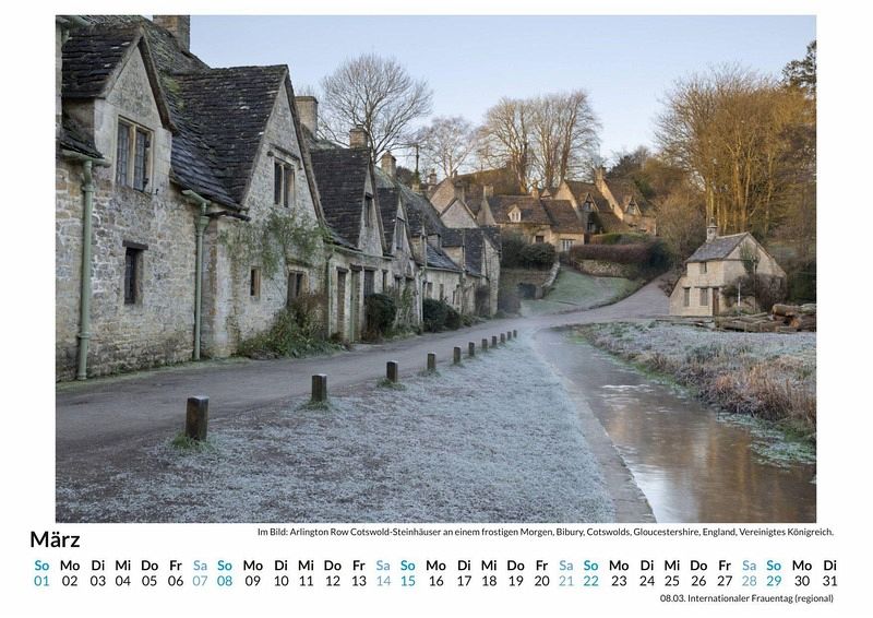 Entdecken Sie die malerische Schönheit von Bibury, einem der charmantesten Dörfer Englands, mit unserem exklusiven Wandkalender! Lassen Sie sich Monat für Monat von 12 atemberaubenden Motiven verzaubern, die die idyllische Landschaft und die historischen Cottages dieses einzigartigen Ortes einfangen. Gedruckt auf hochwertigem, lichtbeständigem Bilderdruckpapier, bringt dieser Kalender die romantische Atmosphäre von Bibury direkt in Ihr Zuhause. Nachhaltig in Deutschland auf FSC-zertifiziertem Papier produziert, ist er nicht nur ein optisches Highlight, sondern auch umweltfreundlich. Perfekt als Geschenk oder für die eigene Wand - holen Sie sich ein Stück England nach Hause! Hochwertig Erleben Sie ein Jahr voller Eleganz mit unserem Premium-Fotokalender. Jedes der 12 Motive ist auf hochwertigem, lichtbeständigem Bilderdruckpapier gedruckt, um die Lebendigkeit jedes Bildes zu bewahren. Die robuste Spiralbindung gewährleistet Langlebigkeit und einfache Handhabung. Nachhaltig Unser Engagement für die Umwelt spiegelt sich in jedem Exemplar wider. Durch die Produktion auf Abruf reduzieren wir signifikant unseren Abfall. Wir verwenden ausschließlich umweltfreundliches, FSC-zertifiziertes Papier. Stolz gefertigt in Deutschland, achten wir bei unserer Logistik auf Klimaschutz, um unseren ökologischen Fußabdruck zu minimieren. Das ideale Geschenk Dieser Kalender ist das perfekte Präsent für jeden Anlass - ob Weihnachten, Geburtstage oder einfach als liebevolle Aufmerksamkeit zwischendurch. Geeignet für Freunde, Familie, Kinder und Erwachsene gleichermaßen, bereichert er jedes Zuhause mit seiner Vielfalt und Schönheit, unabhängig vom Alter der Beschenkten.