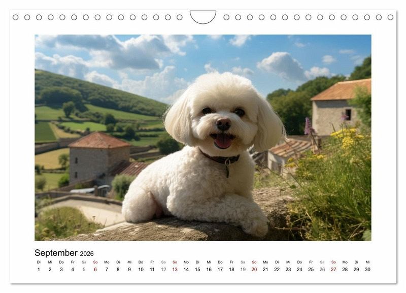Sind sie nicht niedlich, die weiß-gelockten Bichon Frisés? Diese "Schoßhündchen" haben vor allem eine Aufgabe: Sie sind Hunde zum Liebhaben und Knuddeln. Sie erfreuen allein durch ihre Anwesenheit, ohne einen weiteren Zweck erfüllen zu müssen. Die Autorin hat mit Hilfe von KI bezaubernde, fotoähnliche Bilder erstellt, die Sie Monat für Monat erfreuen werden.