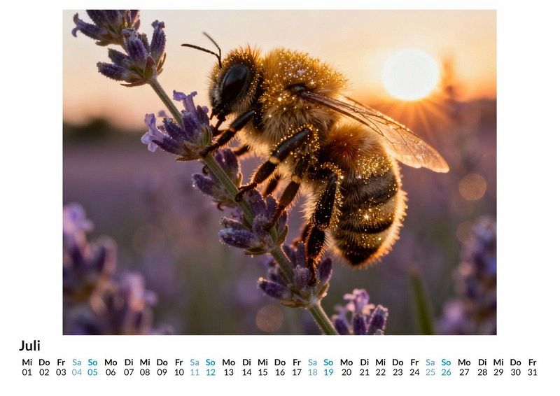 Ein leises Summen in der Luft, ein flauschiger Körper, der von Blüte zu Blüte tanzt. Bienen und Hummeln sind mehr als nur Insekten; sie sind das pulsierende Herz unserer Ökosysteme und ein Symbol für die unberührte Natur. Dieser Kalender fängt ihre Bedeutung in einer Serie von liebevollen Darstellungen ein, die das ganze Jahr über Freude bereiten. Der Kalender ist eine passende Wahl: * Für alle, die die Natur und ihre kleinsten Helfer schätzen. * Für Liebhaber von detailreichen und charmant flauschigen Illustrationen. * Für jene, die mit einem Geschenk eine Botschaft für den Umweltschutz verbinden möchten. Der Kalender "Biene & Hummel" begleitet durch das Jahr mit zwölf einzigartigen Monatsblättern. Jedes Motiv, von einem kreativen Algorithmus erdacht und digital zum Leben erweckt, zeigt die kleinen Bestäuber in fantasievollen und herzerwärmenden Szenen. Mal schlafend in einer Blüte, mal neugierig die Welt erkundend, fangen die Bilder die Sanftmut und die Wichtigkeit dieser Tiere ein. Mit dem Kauf dieses Kalenders kann man Folgendes erwarten: * Zwölf Monatsmotive, die die Welt der Bienen und Hummeln feiern. * Ein praktisches Kalendarium, das den Blick auf das Wesentliche lenkt. * Ein Wandkalender, der als tägliche Erinnerung an die Schönheit der Natur dient. Dieser Kalender ist eine Hommage an die unermüdlichen Bestäuber und ein Plädoyer für ihren Schutz. Er bringt Monat für Monat ein Stück Naturverbundenheit an die Wand und inspiriert dazu, die kleinen Wunder um uns herum bewusster wahrzunehmen. Es lohnt sich, einen Blick auf die einzelnen Monatsansichten zu werfen und sich von der flauschigen Vielfalt begeistern zu lassen.